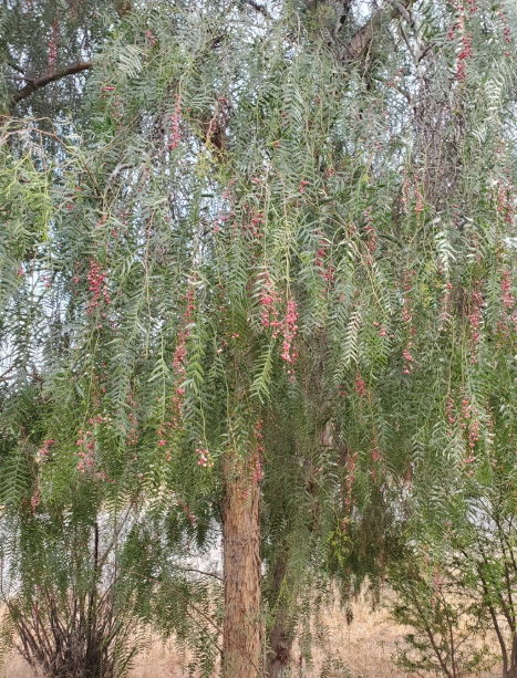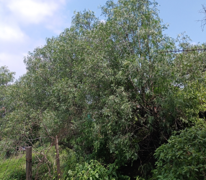 Sus hojas son compuestas e imparipinnadas, largas (aprox. 15–30 cm), con muchos folíolos estrechos (frecuentemente 15 a 41), que le dan un follaje fino y colgante.